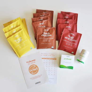 The USANA Reset Jump Start Kit helps you break unhealthy habits, and builds a simple, balanced routine with Nutrimeal shakes, Metabolism + and Probiotics.